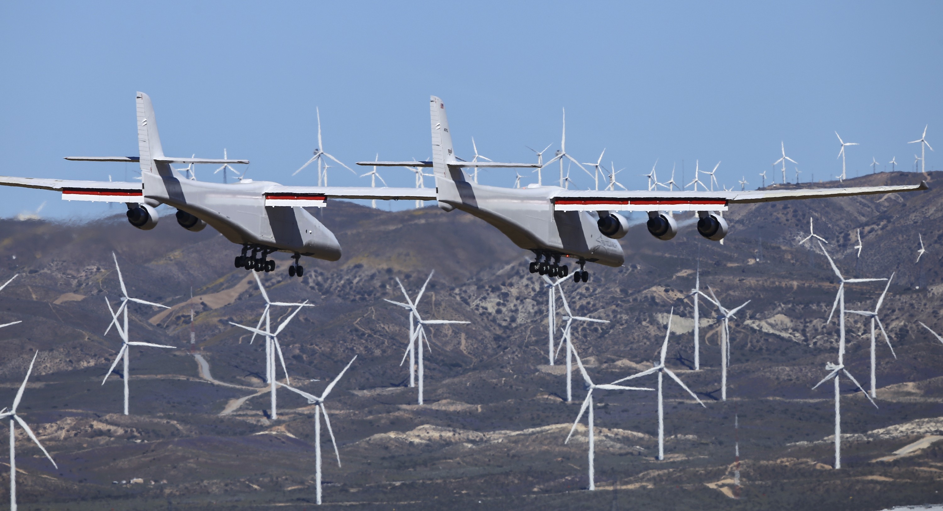 Aeronave tem duas fuselagens, unidas por uma asa de 117 metros, e foi projetado para lançar satélites em órbitas baixas da Terra. Maior avião já construído no mundo faz primeiro voo de teste na Califórnia