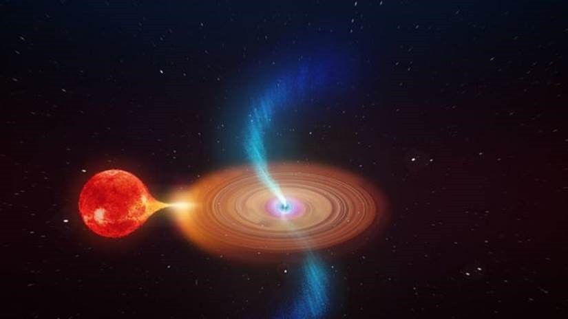 ‘É um dos mais extraordinários sistemas de buraco negro já encontrado’, afirmou o principal autor do estudo. O buraco negro dispara jatos de plasma ao sugar material de uma estrela companheira