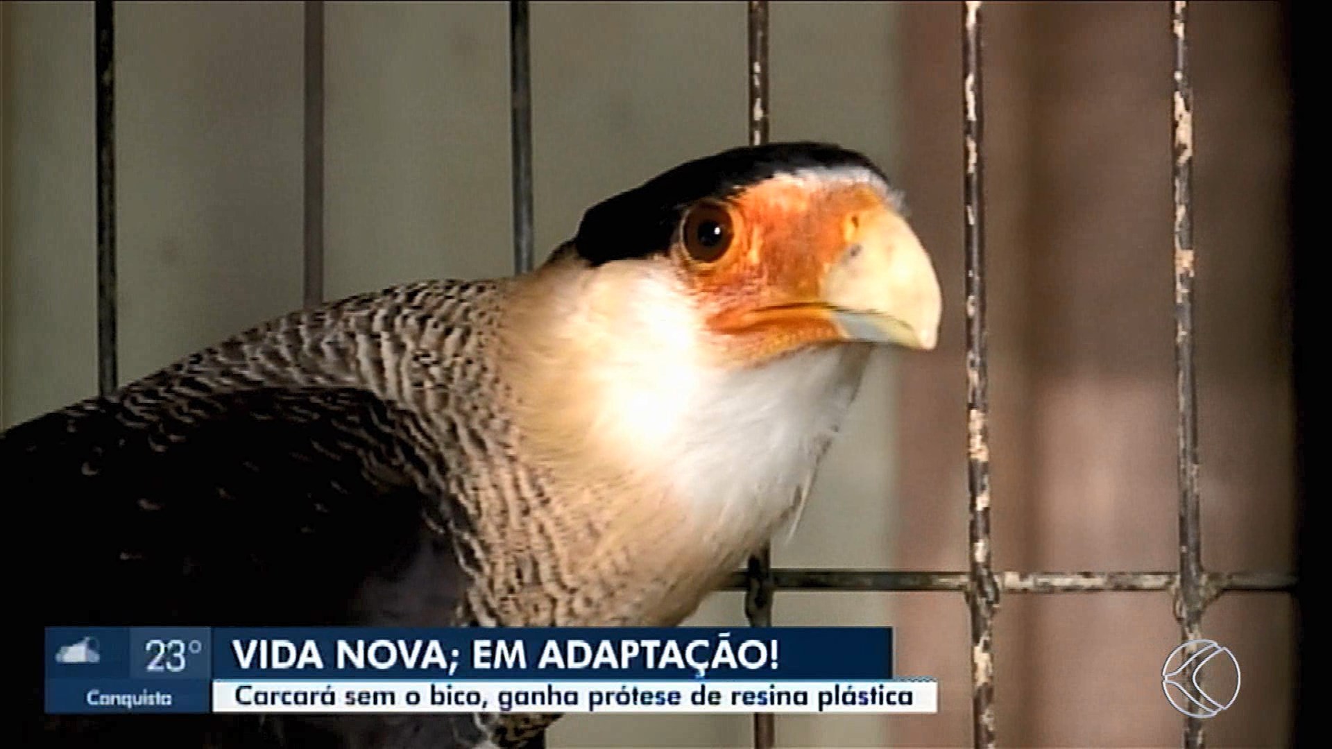 ‘José’ foi resgatado sem o bico superior, possivelmente causado por atropelamento. Prótese foi desenvolvida por médico veterinário, junto com alunos de universidade. Carcará é o primeiro da espécie a receber uma prótese de bico